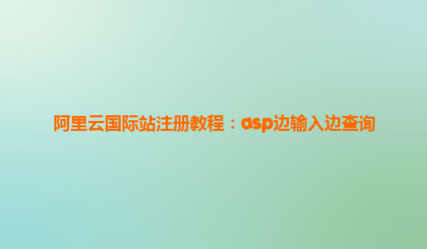 阿里云国际站注册教程:ASP边输入边查询功能实现指南 一、阿里云国际站的优势 作为全球领先的云计算服务提供商,阿里云国际站(AlibabaCloudInternational)为海外用户提供稳定可靠的云服务解决方案。
