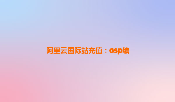 阿里云国际站充值:ASP编程方案的优势解析 一、标题内容分解 标题"阿里云国际站充值:ASP编程"包含三个核心要素: 阿里云国际站-全球化的云计算服务平台,支持多语言多币种交易 充