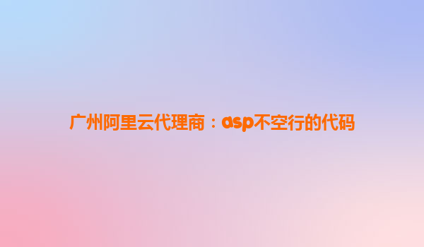 广州阿里云代理商:ASP不空行的代码与阿里云服务的优势结合 一、ASP不空行的代码简介 在ASP(ActiveServerPages)开发中,代码的格式化和优化对性能和可读性至关重要。其中,不空行的代