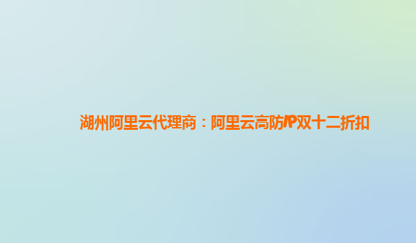 湖州阿里云代理商:阿里云高防IP双十二折扣
