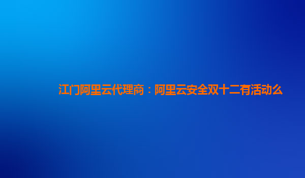江门阿里云代理商:阿里云安全双十二有活动么