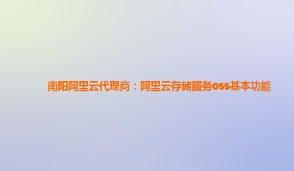 南阳阿里云代理商:阿里云存储服务OSS基本功能