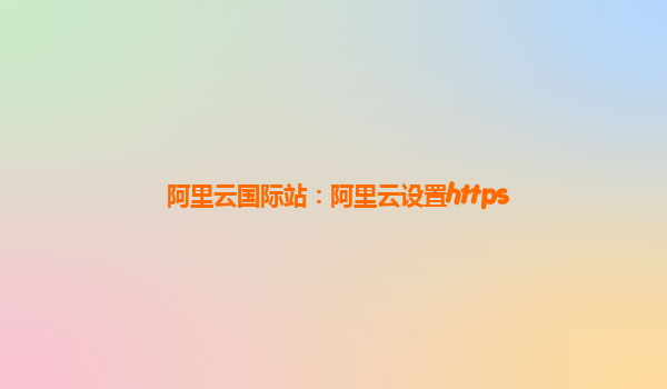 阿里云国际站:如何设置HTTPS