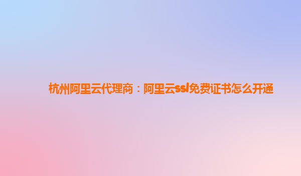 杭州阿里云代理商:阿里云ssl免费证书怎么开通