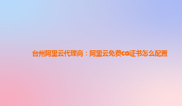 阿里云免费CA证书的配置