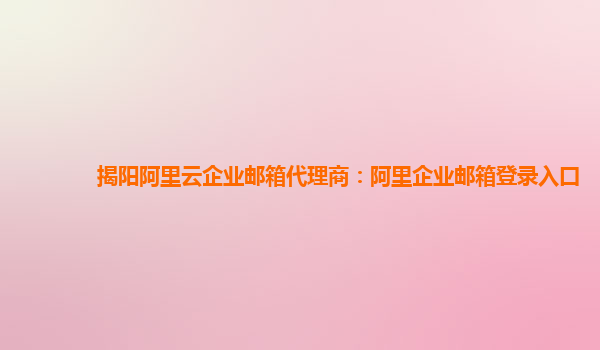 揭阳阿里云企业邮箱代理商:阿里企业邮箱登录入口