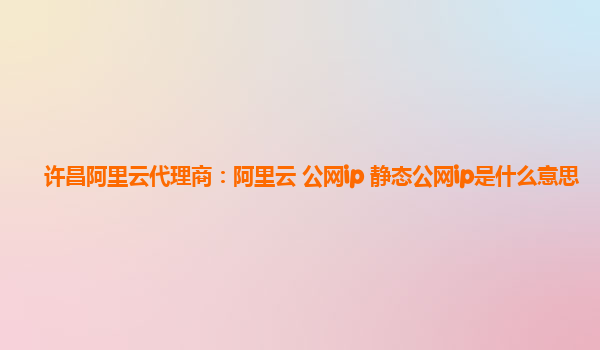结合标题内容,许昌阿里云代理商提供的服务包括阿里云、公网IP和静态公网IP的组合。这意味着客户可以通过许昌阿里云代理商购买阿里云服务,并获得一个公网IP以及一个静态公网IP地址。