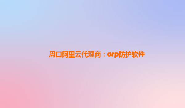 周口阿里云代理商:ARP防护软件