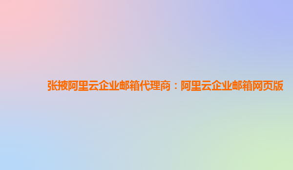 阿里云企业邮箱代理商:阿里云企业邮箱网页版