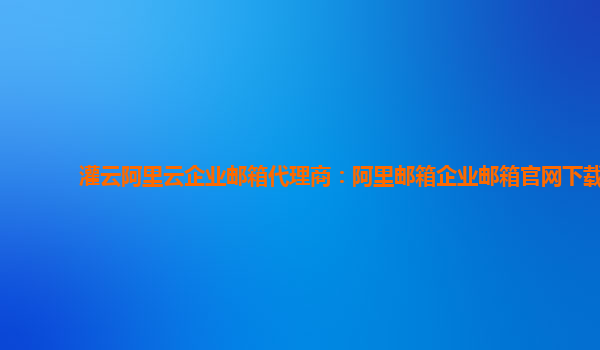 灌云阿里云企业邮箱代理商:阿里邮箱企业邮箱官网下载