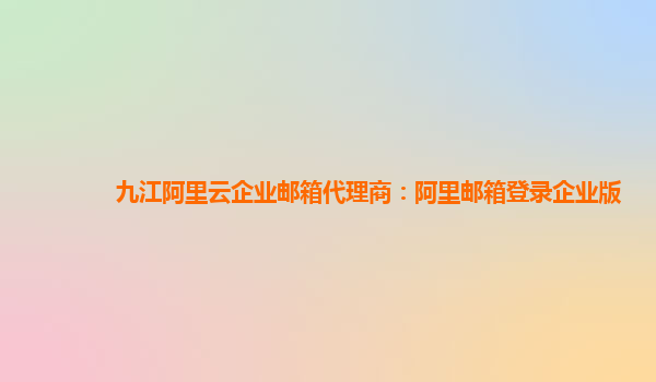 九江阿里云企业邮箱代理商:阿里邮箱登录企业版