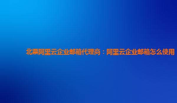 北票阿里云企业邮箱代理商:阿里云企业邮箱怎么使用
