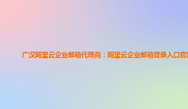 广汉阿里云企业邮箱代理商:阿里云企业邮箱登录入口官网