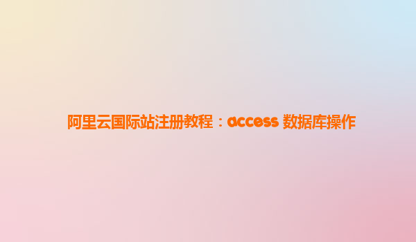 阿里云是全球领先的云计算服务提供商,提供了一系列的云产品和解决方案,其中包括数据库服务。本教程将介绍如何注册阿里云国际站账号并使用access进行数据库操作。