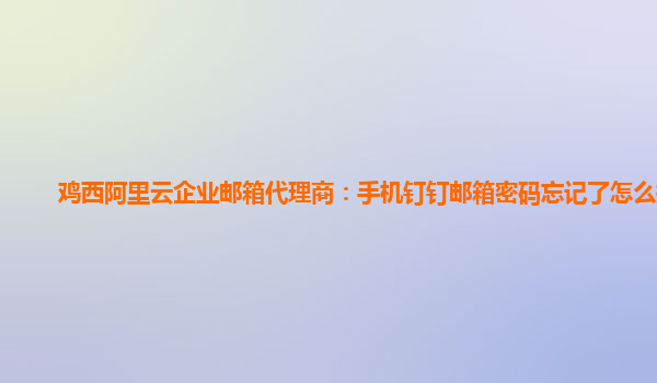 鸡西阿里云企业邮箱代理商:手机钉钉邮箱密码忘记了怎么找回