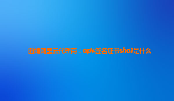 曲靖阿里云代理商:APK签名证书SHA1是什么