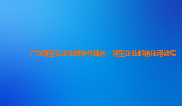 广水阿里云企业邮箱代理商:阿里企业邮箱使用教程