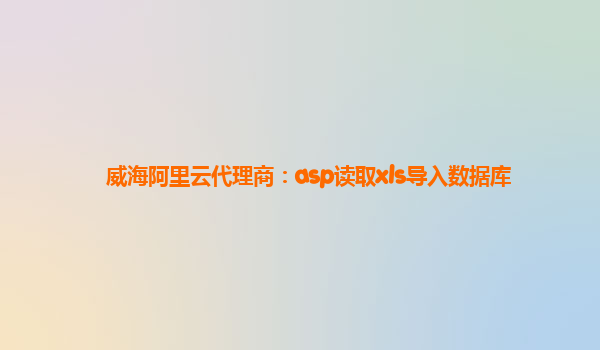 威海阿里云代理商 - 使用ASP读取XLS导入数据库