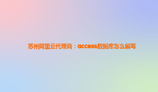 苏州阿里云代理商:Access数据库怎么编写
