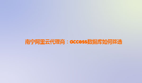 南宁阿里云代理商:access数据库如何筛选