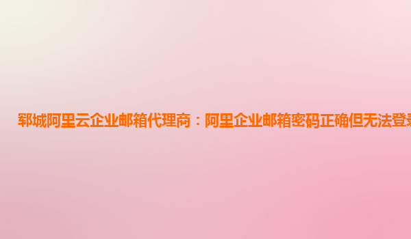 郓城阿里云企业邮箱代理商:阿里企业邮箱密码正确但无法登录怎么办