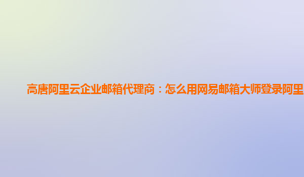 阿里云企业邮箱代理商:怎么用网易邮箱大师登录阿里邮箱