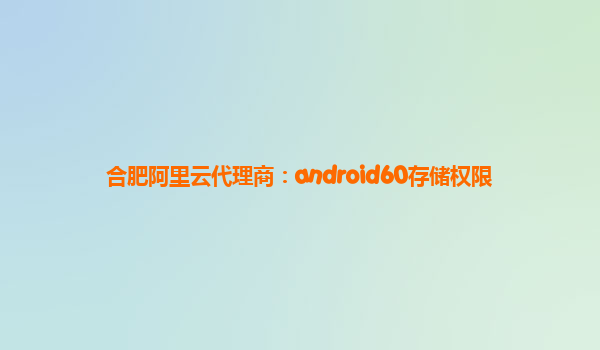 合肥阿里云代理商:android60存储权限
