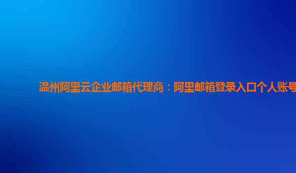 温州阿里云企业邮箱代理商:阿里邮箱登录入口个人账号
