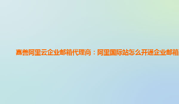 嘉善阿里云企业邮箱代理商:阿里国际站怎么开通企业邮箱账号