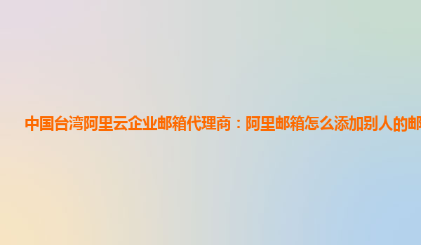 中国台湾阿里云企业邮箱代理商:阿里邮箱怎么添加别人的邮箱地址