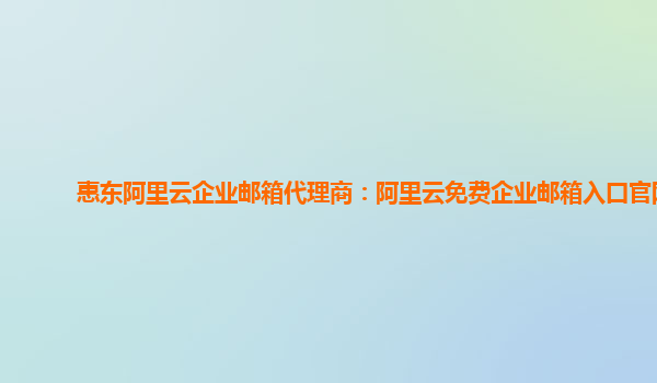 阿里云企业邮箱代理商:阿里云免费企业邮箱入口官网