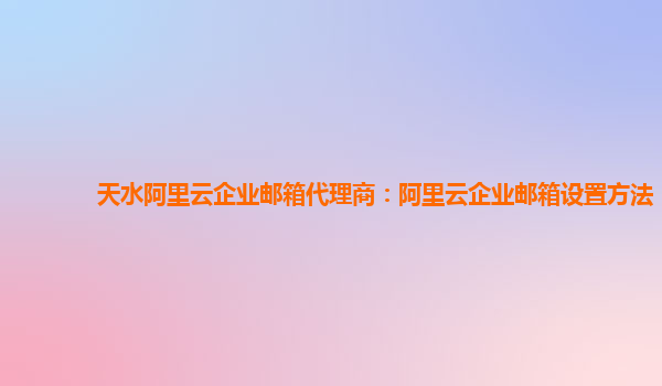 天水阿里云企业邮箱代理商:阿里云企业邮箱设置方法