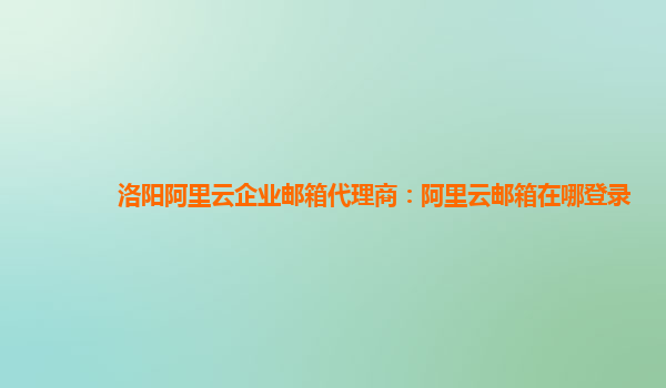 洛阳阿里云企业邮箱代理商:阿里云邮箱在哪登录