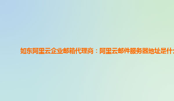 作为如东阿里云企业邮箱代理商,我们了解到阿里云企业邮箱的服务器地址是多样且可靠的。本文将重点介绍阿里云邮件服务器地址以及阿里云企业邮箱的优势和好用之处。