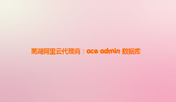 阿里云是目前国内领先的云计算服务提供商,而Ace Admin数据库则是芜湖地区的阿里云代理商。在这篇文章中,我们将重点介绍阿里云和阿里云代理商的优势。