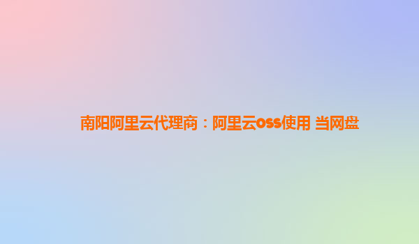 南阳阿里云代理商:阿里云OSS使用当网盘