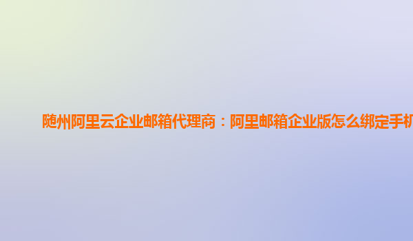 随州阿里云企业邮箱代理商:阿里邮箱企业版怎么绑定手机号