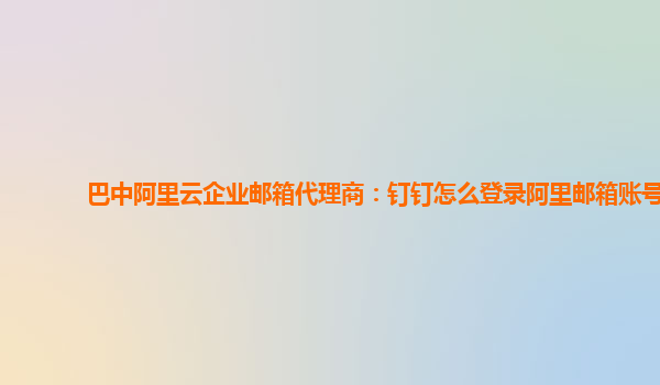 巴中阿里云企业邮箱代理商:钉钉怎么登录阿里邮箱账号