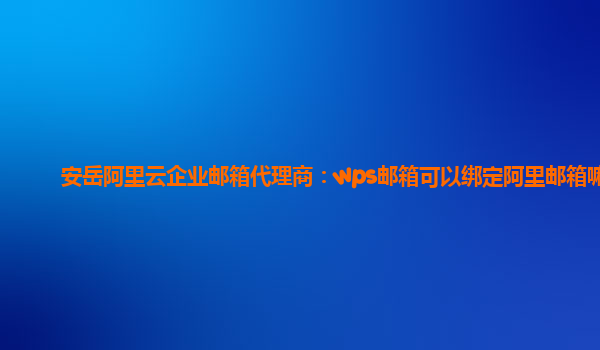 安岳阿里云企业邮箱代理商:wps邮箱可以绑定阿里邮箱嘛