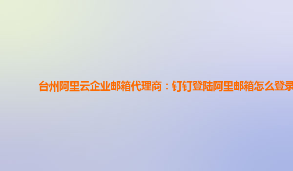 台州阿里云企业邮箱代理商:钉钉登陆阿里邮箱怎么登录