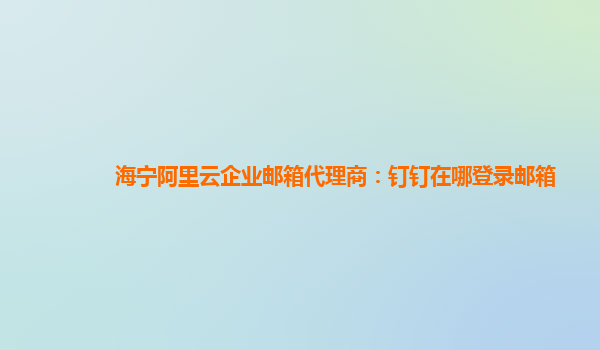 海宁阿里云企业邮箱代理商:钉钉在哪登录邮箱