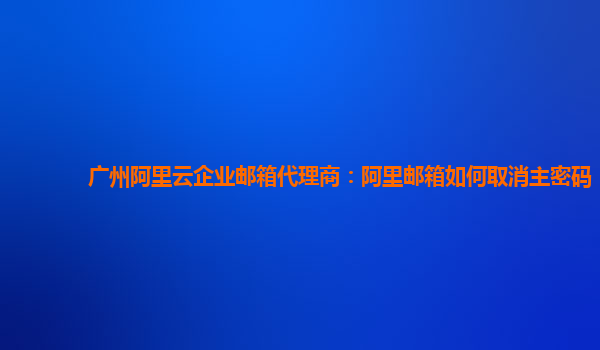 广州阿里云企业邮箱代理商:阿里邮箱如何取消主密码