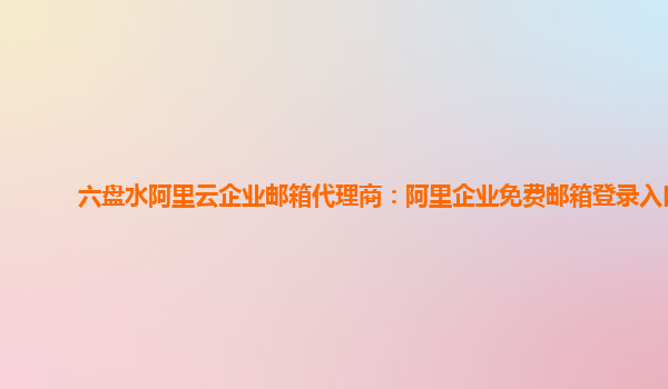六盘水阿里云企业邮箱代理商:阿里企业免费邮箱登录入口