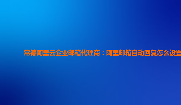 常德阿里云企业邮箱代理商:阿里邮箱自动回复的设置方法