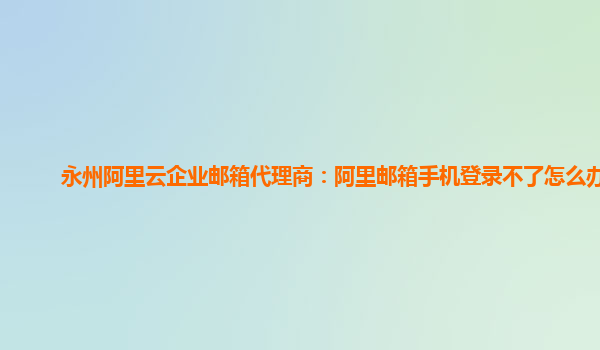 永州阿里云企业邮箱代理商:阿里邮箱手机登录不了怎么办呢
