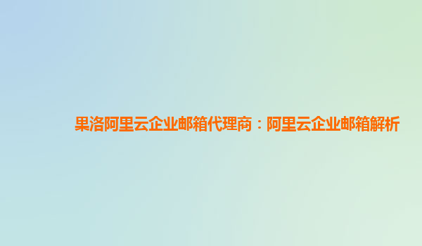 果洛阿里云企业邮箱代理商:阿里云企业邮箱解析