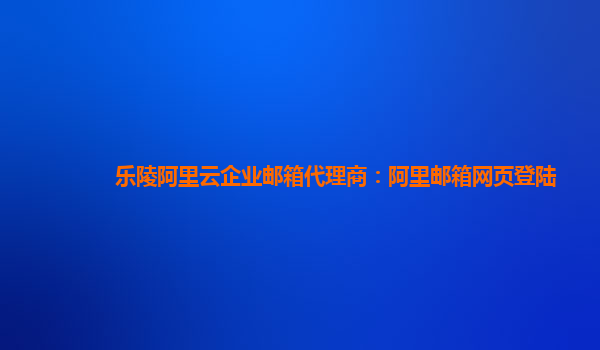 乐陵阿里云企业邮箱代理商:阿里邮箱网页登陆
