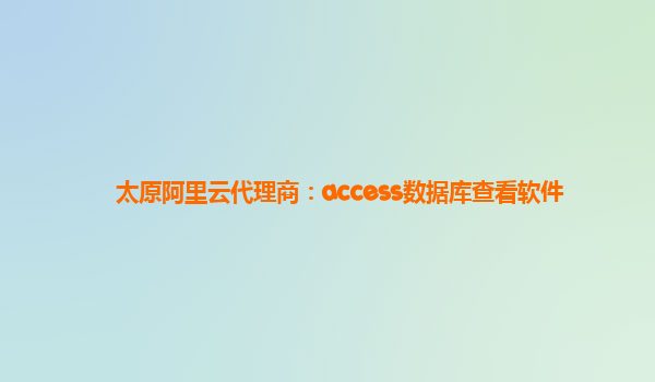 作为太原地区的阿里云代理商,我们致力于为客户提供全方位的阿里云服务和支持。特别针对Access数据库查看软件,我们可以为您提供以下服务: