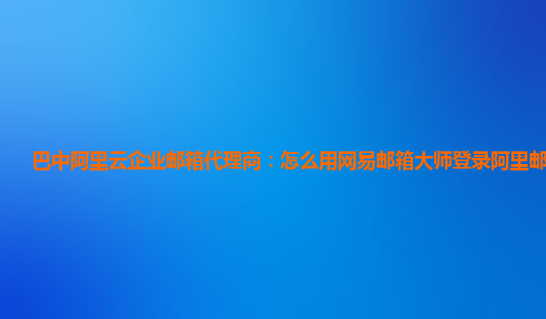 巴中阿里云企业邮箱代理商:怎么用网易邮箱大师登录阿里邮箱账号