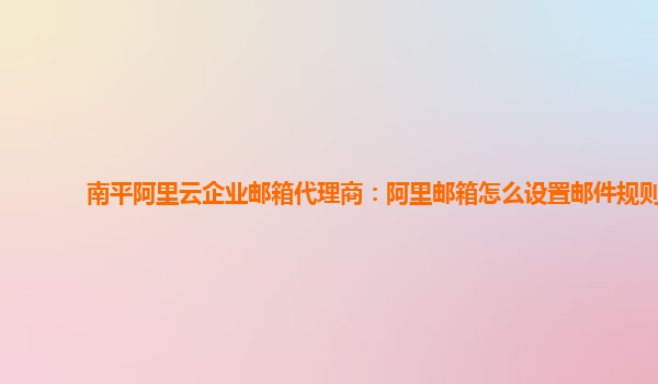 南平阿里云企业邮箱代理商:阿里邮箱怎么设置邮件规则